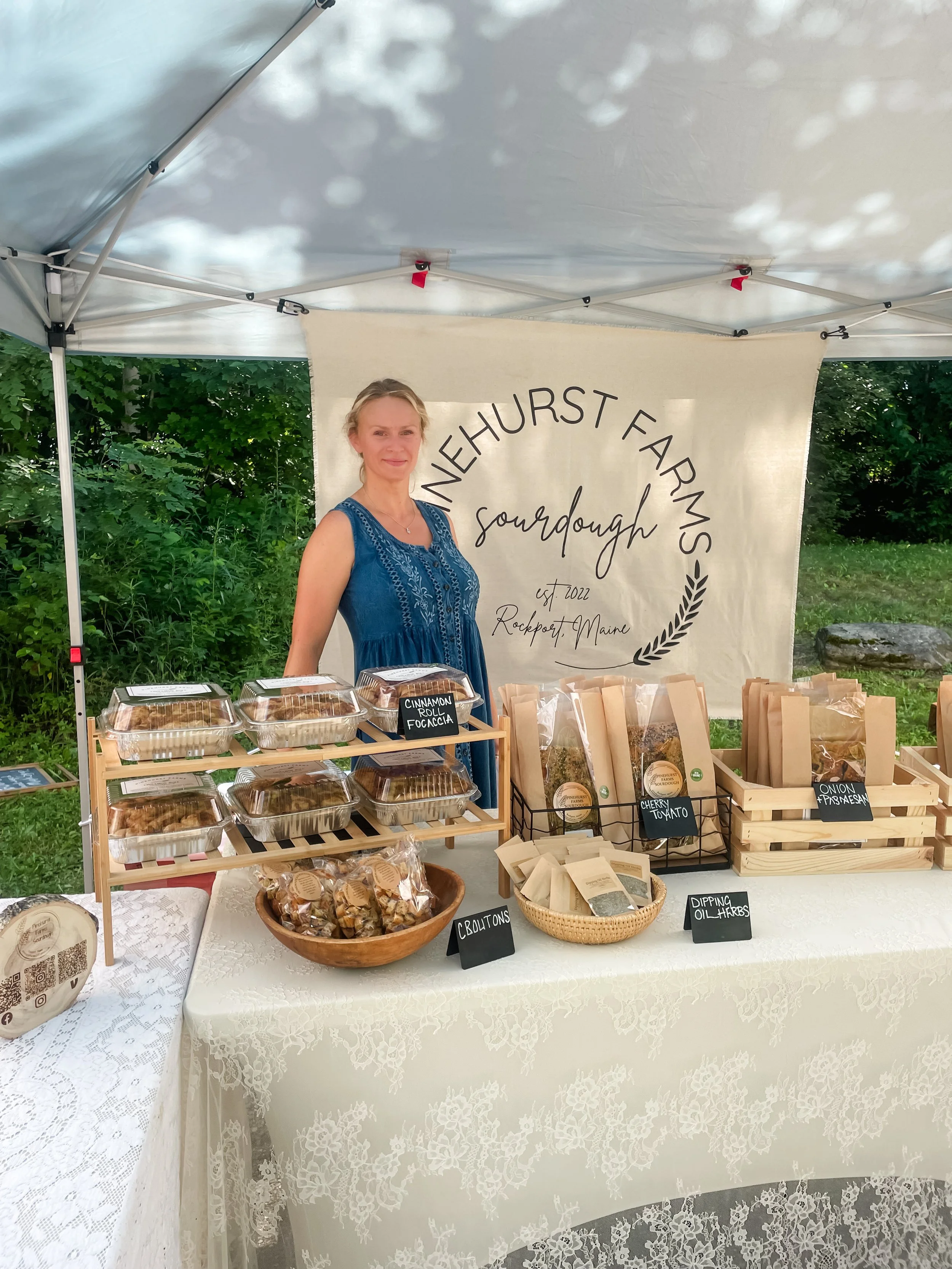 Hi, I’m Franzeska, the baker, mom, and one-woman dough-slinging show behind Pinehurst Sourdough in Rockport, Maine. I started baking because I wanted food I could actually trust: real bread with ingredients I could count on one hand. That turned into a mission to offer other families the same peace of mind. My sourdough loaves are made with just flour, water, and salt. And when I make English muffins or cinnamon rolls, I keep them just as clean and honest. No preservatives, no weird junk.